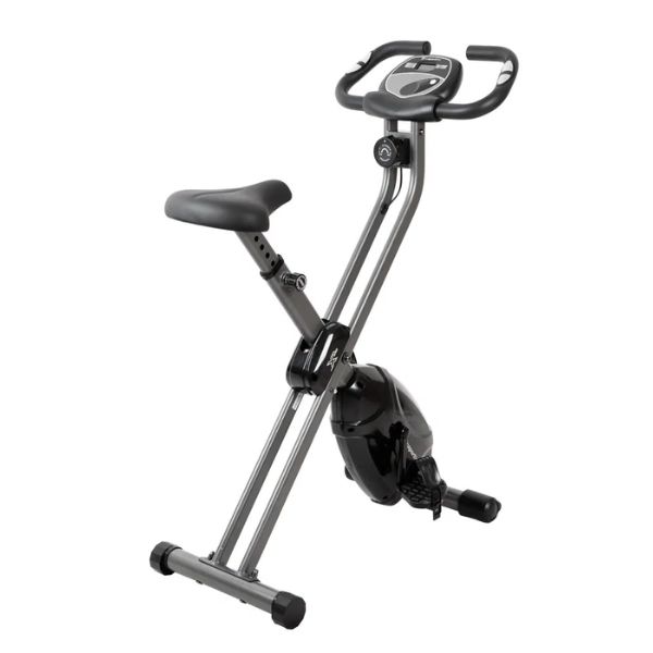 X-Bike är gjord för att åka fram och tillbaka. När passet är klart fäller du ihop ramen och ställer den mot en vägg eller skjuter in den i ett förråd/garderob. Hopfälld blir den smal och hög, vilket brukar vara lättare att “parkera” än en traditionell motionscykel.